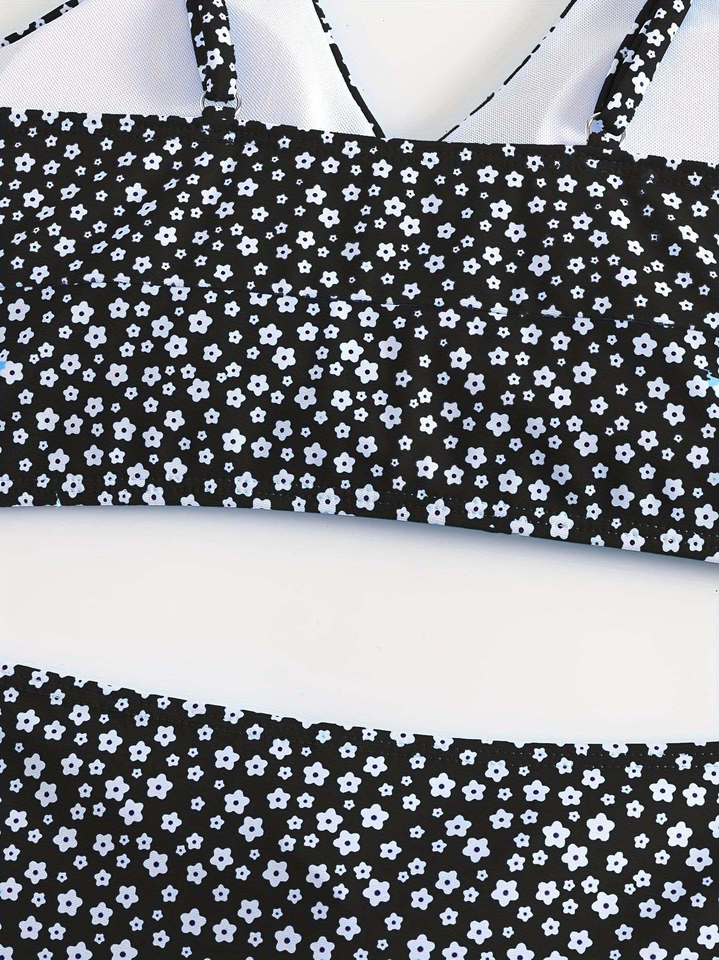 Black Solid Color Bikini Set with Floral Boyshorts – Two-Piece Swimsuit for Women