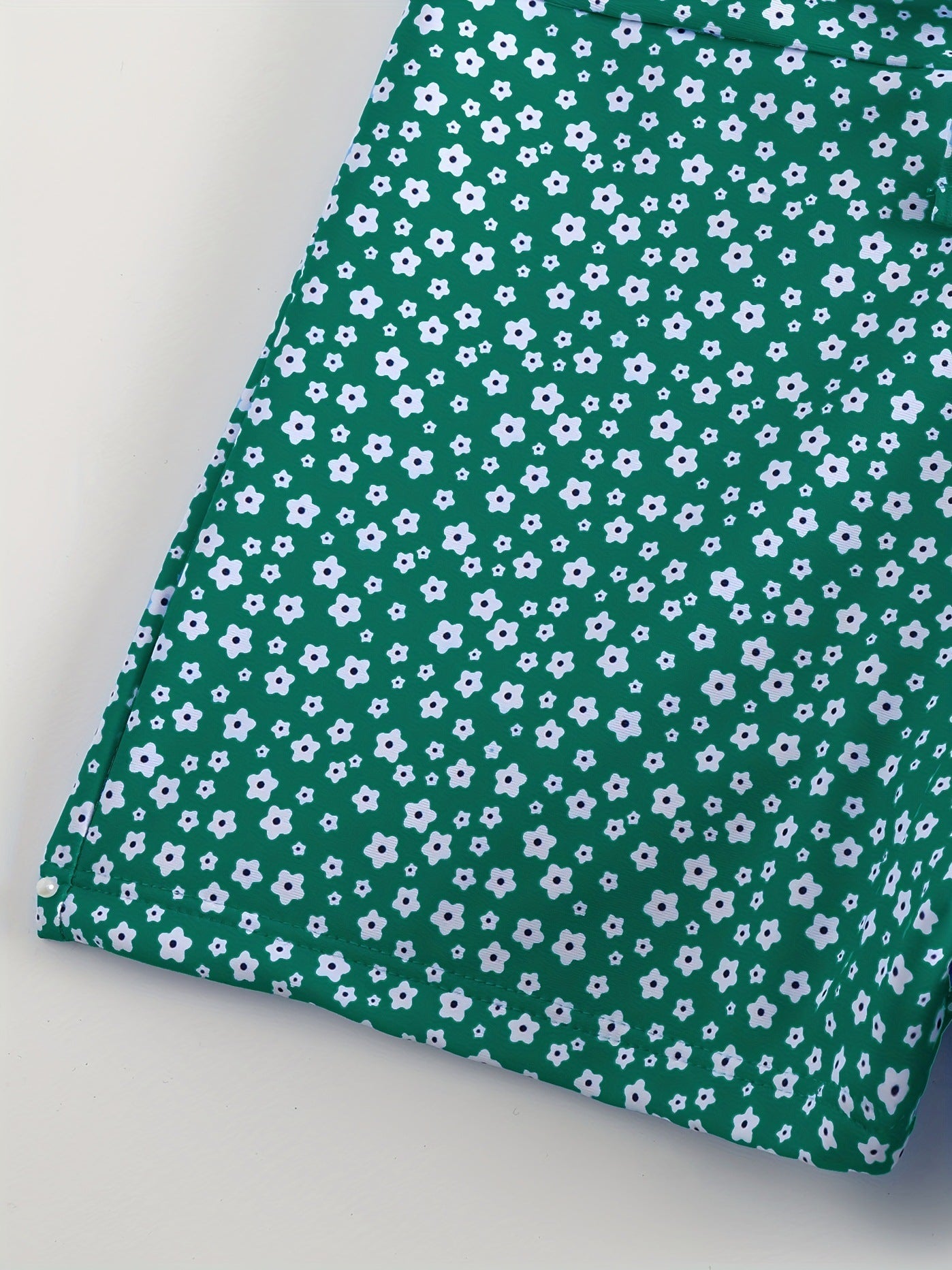 Green Solid Color Bikini Set with Floral Boyshorts – Two-Piece Swimsuit for Women