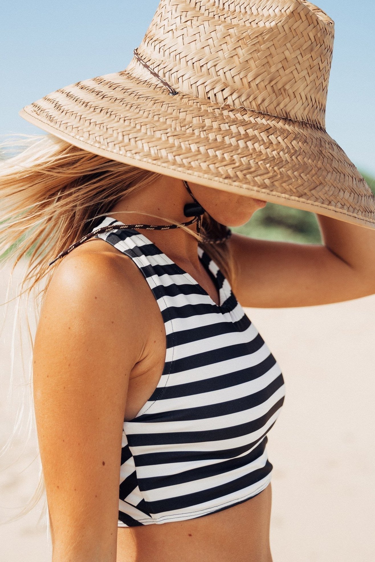 At the beach or in the pool, the Game Changer Swim Top stays put as it flatters and lengthens your figure with just the right amount of coverage. The top's higher neckline and slightly longer length create a sporty shape that won't ride up or require adjusting, keeping you in place whether you're frolicking in the waves or spiking that volleyball. Crossing straps in the back add sass and let you show off your tan. Now in our classic wide stripe print.You asked, we delivered! These bottoms feature a rise that's higher than our hipster bottoms, but lower than our high-waisted bottoms. Sitting at the perfect in-between spot on your hips, the Laguna Midi Bottoms give youthe right amount of coverage to keep you confident, comfortable, and feeling great.