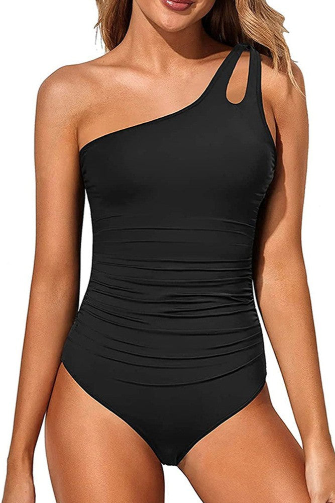 One Shoulder One Piece Swimsuit for Women Tummy Control Bathing Suits Black