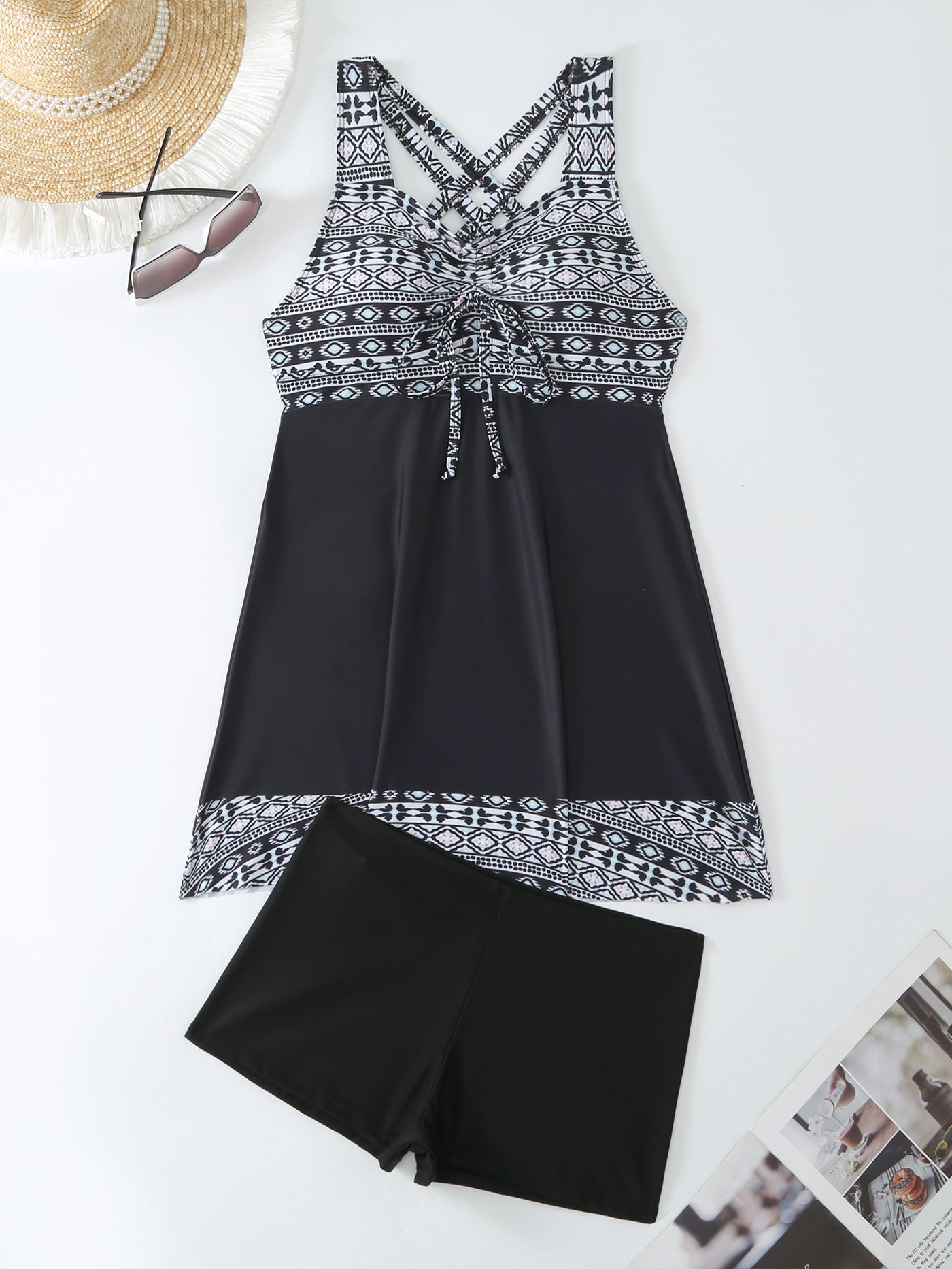 The clever A-line skirted design provides excellent coverage for your hips, thighs, and tummy, offering a comfortable and modest silhouette without compromising on style. A ruched bust with a feminine tie detail enhances your shape and provides support.